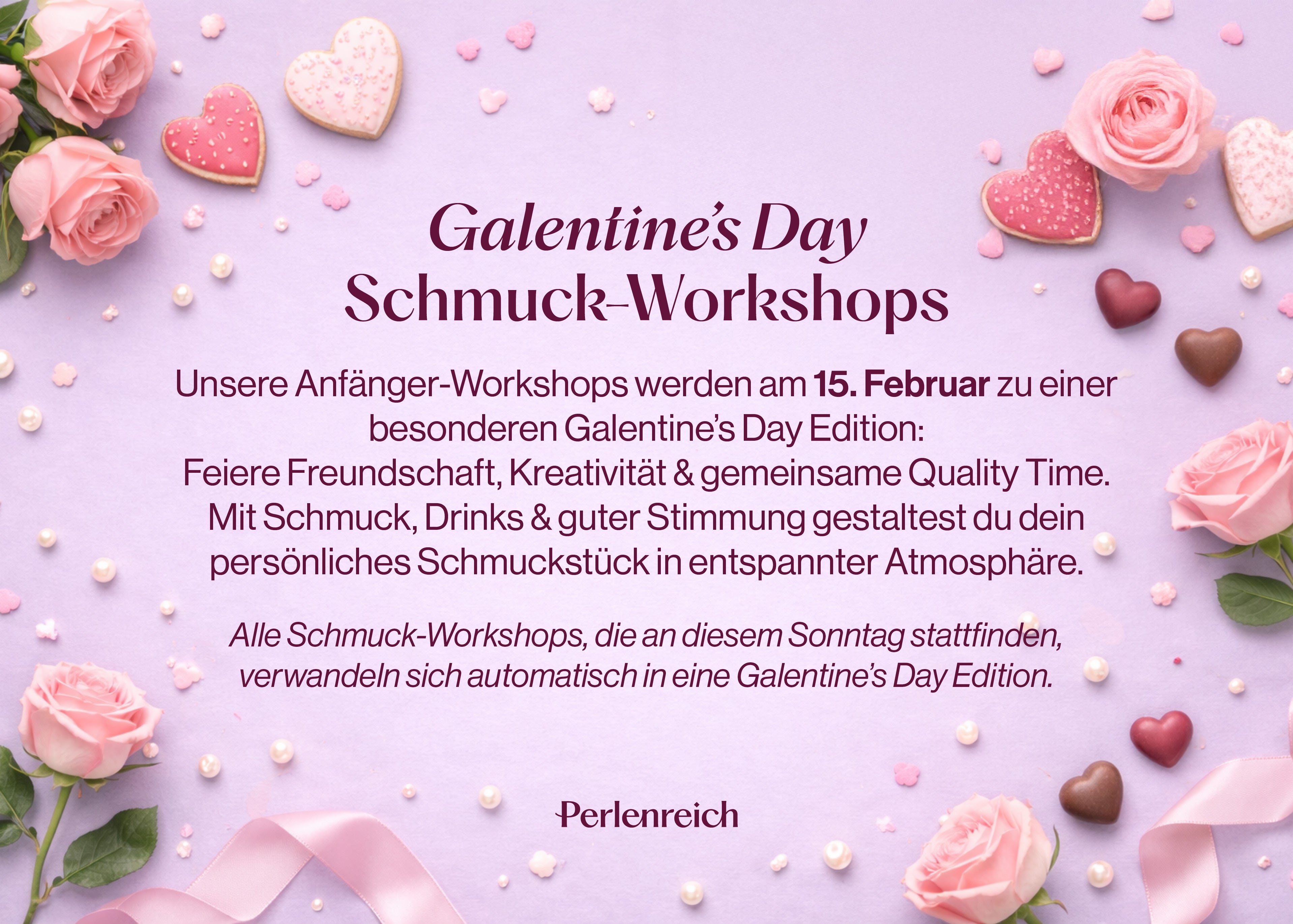 Im Perlenreich Düsseldorf gestaltest du deinen Schmuck selbst – mit hochwertigen Perlen, Charms und Edelstahlketten. Komm spontan vorbei oder buche einen unserer beliebten Workshops für Einzelpersonen, Gruppen, JGAs oder Geburtstage. Unsere Perlenbar ist jederzeit für dich geöffnet – kreativ sein war noch nie so einfach!
