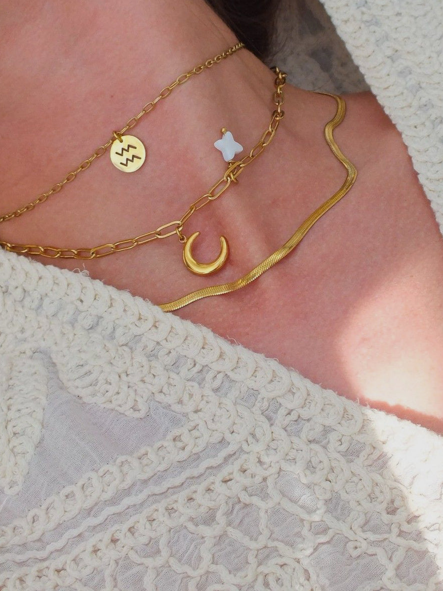 Zarte Halskette mit dem runden Sternzeichen-Charm, inspiriert von deiner kosmischen Energie und der Einzigartigkeit deiner Persönlichkeit.