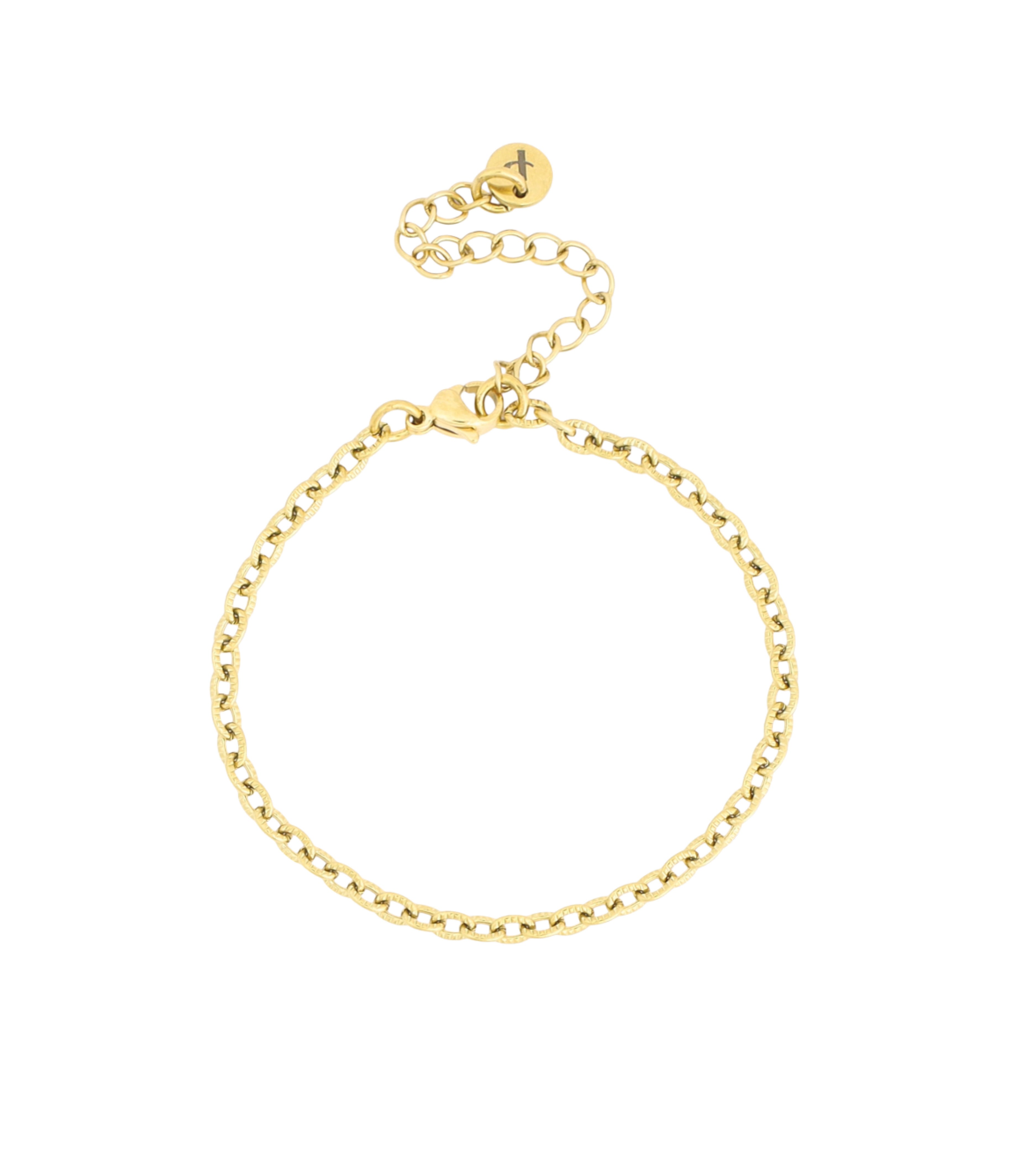 Das perfekte Mix & Match Armband mit golden hour Glanz! Einfach zu Kombinieren, trotz der besonderen Struktur der Kette und perfekt für den modernen Mix & Match Look. Bei diesem Armband findet jeder Anhänger seinen perfekten platz.