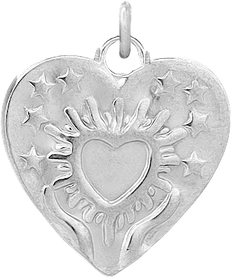 Der silberne Anhänger Herz ist aus wasserfestem Edelstahl, mit einer nickelfreien Legierung. Das elegante Design und die vielen, kleinen Details mit den haltenden Händen, Sternen und dem Herz in Sonnenform machen ihn zu einem stilvollen Hingucker, welcher sich perfekt mit anderen Edelstahl- oder Perlenelementen kombinieren lässt.